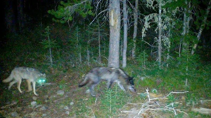 Trail camera footage of wolves